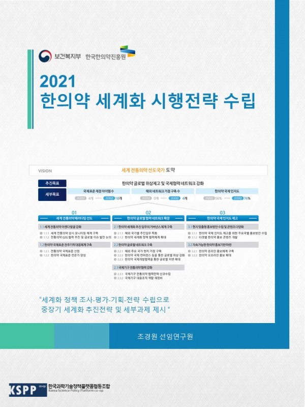 한의약 세계화 시행전략 수립 관련링크 페이지 정보 작성일22-03-03 13:13 조회5,989회 본문 한의약 정책의 글로벌 역량 강화를 위한 정책 조사 및 대안 제시 이전글 다음글 목록